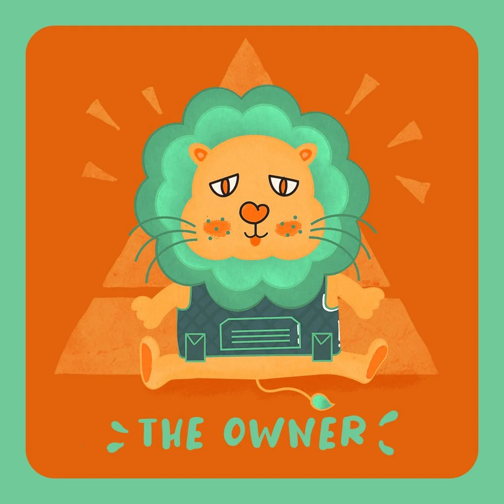 The "Owner" card starts the game with two lives; when attacked, it loses its bulletproof vest, representing the loss of one life.