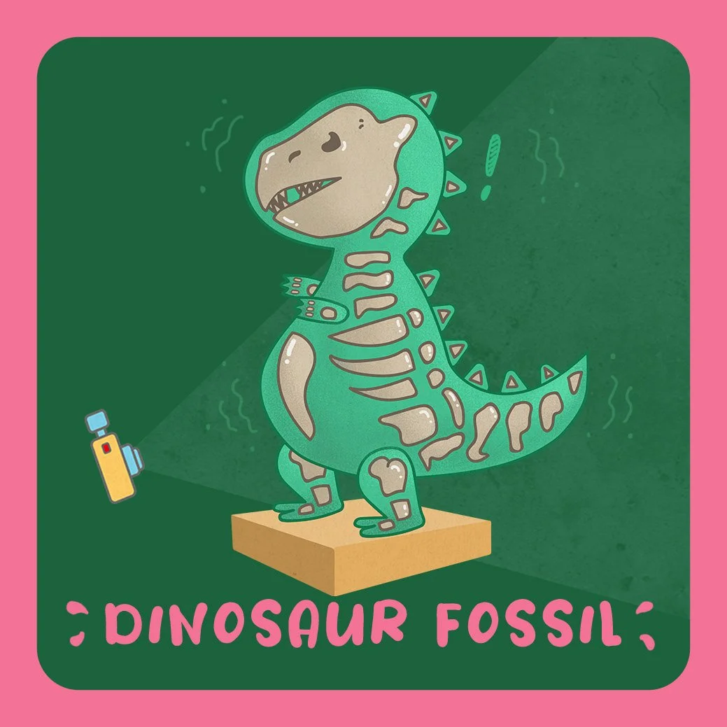 The "Night of the Museum" card shows a dinosaur struck by lightning when identified, inspired by "Night at the Museum." The fun design matches character cards and visually indicates its role in identifying character cards, making it easy for children to understand just by looking at the illustration.